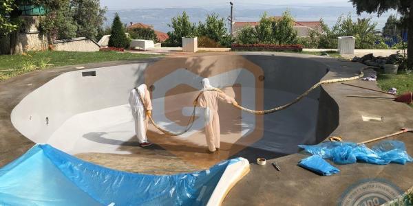 Gürel Mühendislik ekibine ulaşan iş verenimiz ile yaptığımız analiz sonunda doğru ürünü tespit edip yerinde uyguladık. Murat bey ve müşterisi sprey polyurea uygulaması sayesinde havuz su yalıtımını uzun süre dert etmeyecek gibi görünüyor…